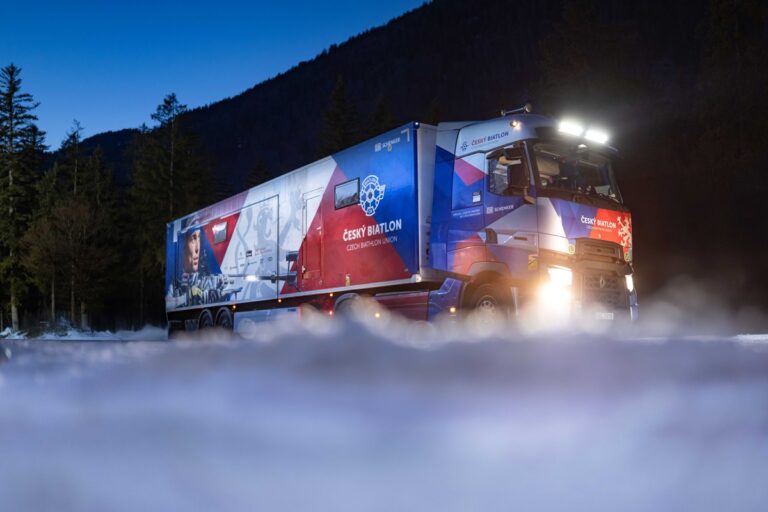 Český biatlonový tým využívá pro sezónu Světového poháru a Zimní olympijské hry 2026 kamionovou soupravu...